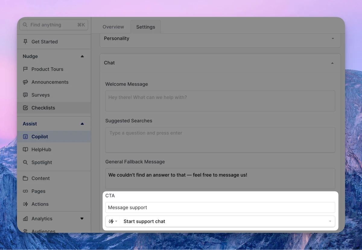 Go to HelpHub settings → Additional Resources → Support CTA.